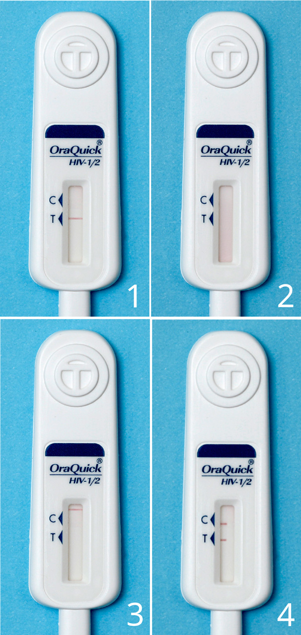 If two complete lines are present at areas marked "C" and "T" triangles on the test device (even if the line is faint), the result is interpreted as POSITIVE. You may have been infected with HIV.